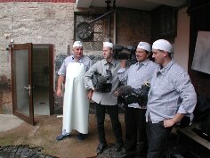tüchtig mit. Gedreht wurde für den Sendung “Weserbergland” wie unsere Schweine im Stroh-Laufstall gefüttert werden und wie im Schlachthaus aus Rohfleisch Bärlauchbratwurst gemacht wird. Anschließend bereitete